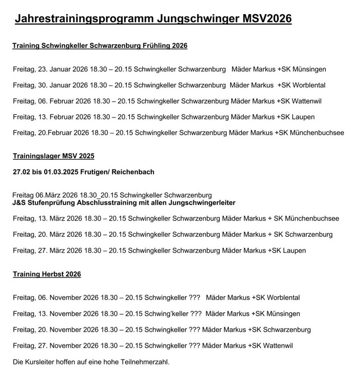 Tätigkeitsprogramm Schwingklub MünsingenTätigkeitsprogramm Jungschwinger MSV 2026
